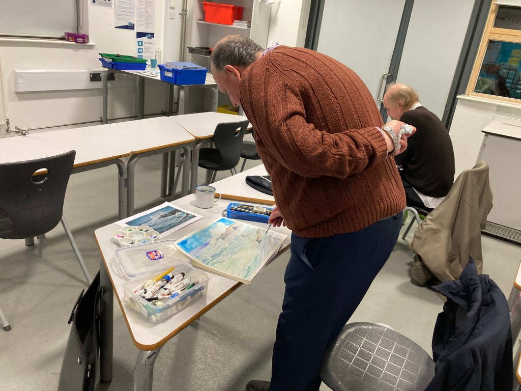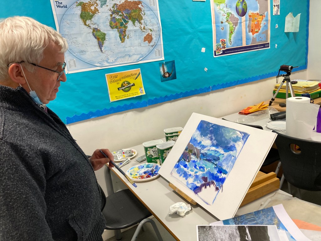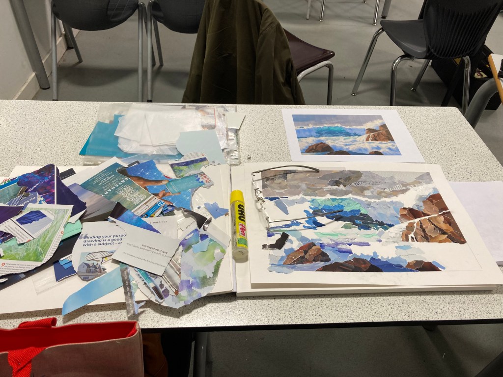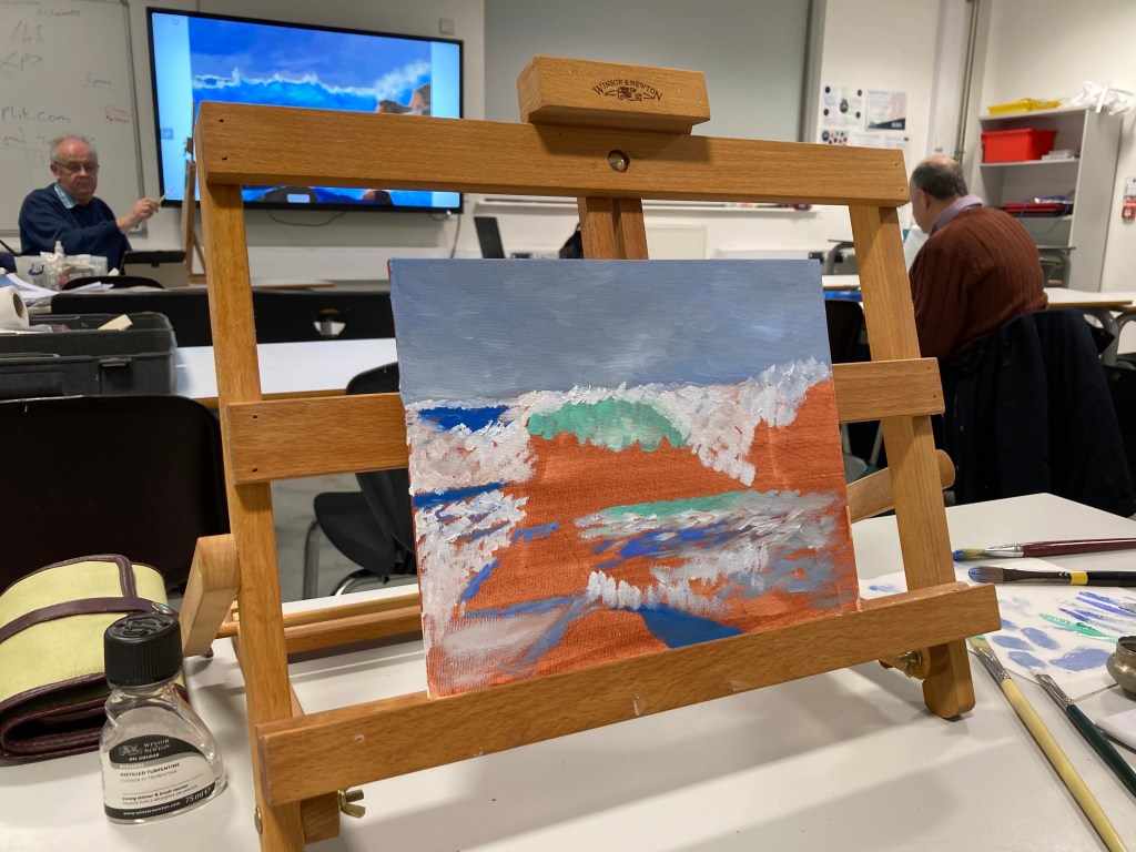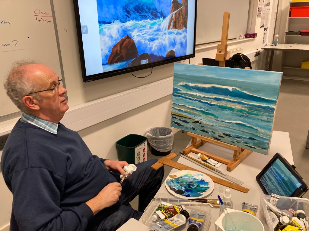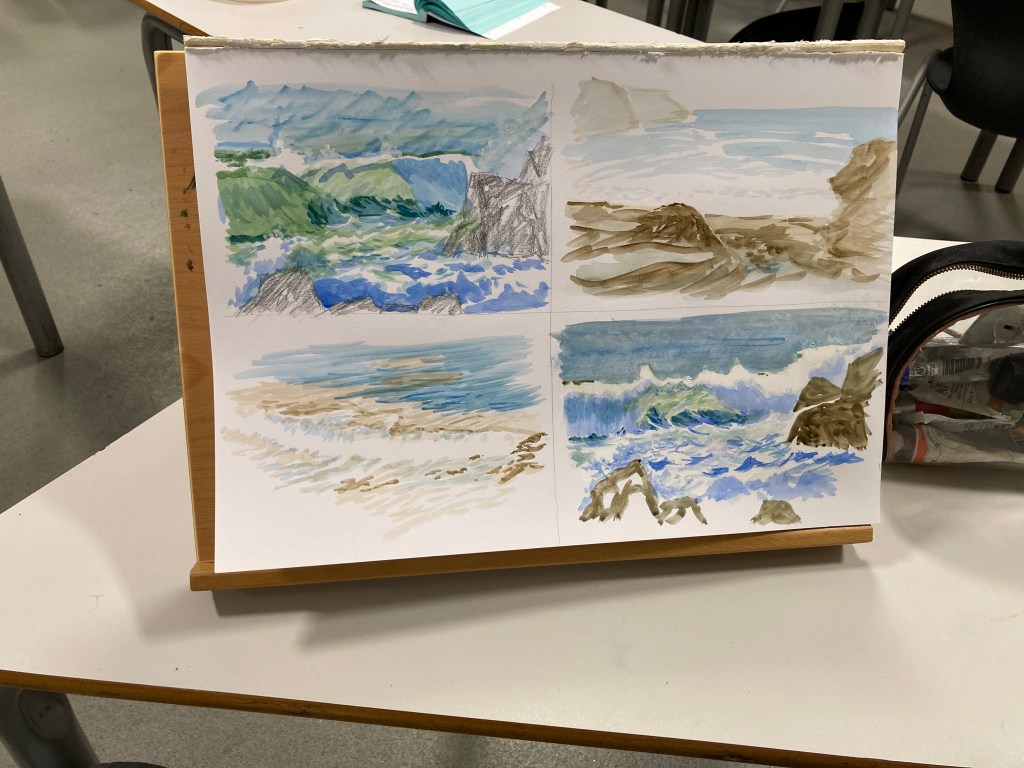 The objective was to attempt to paint breaking waves, particularly focusing on the translucence of light shining through the wave cusp. We began by watching a series of tutorial videos and looking at some photographs.