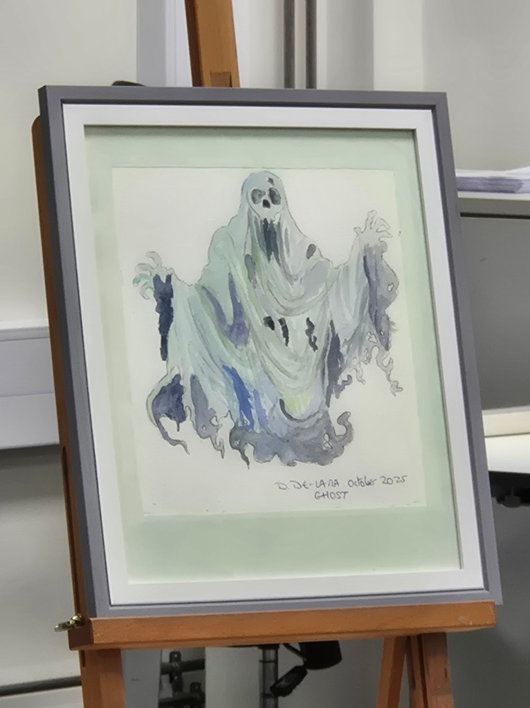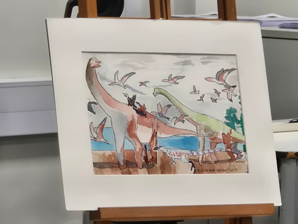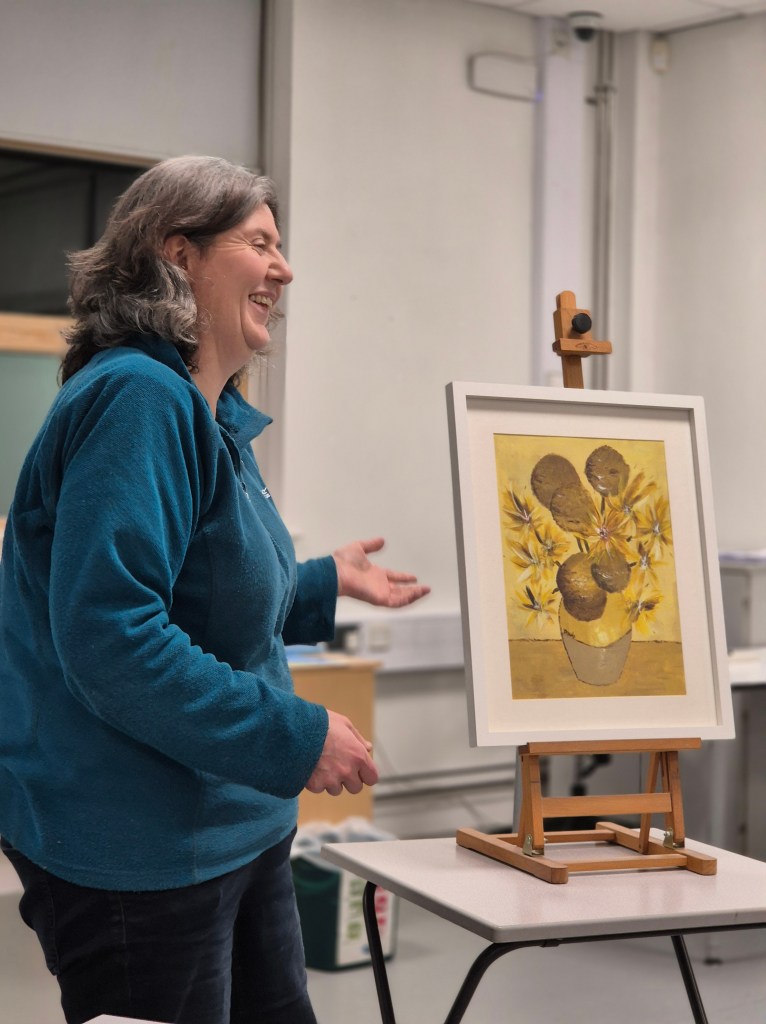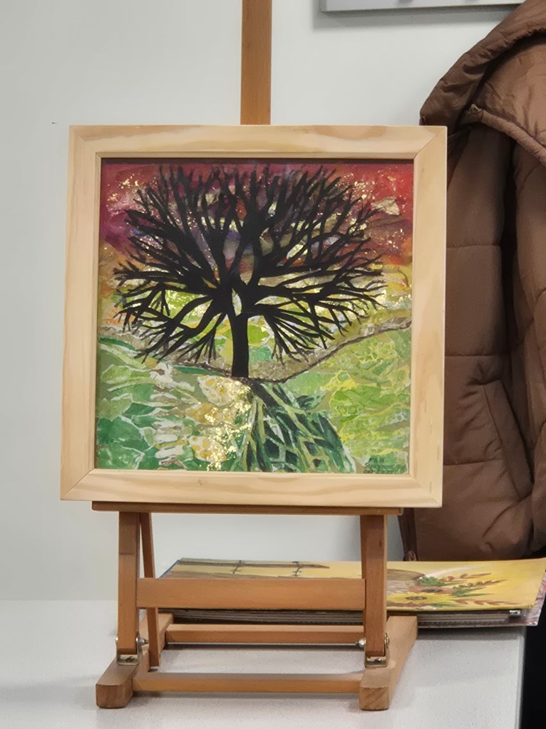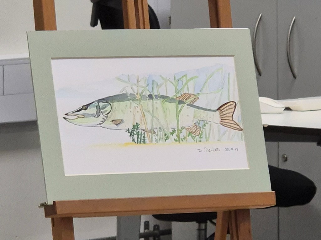 On the last meeting of the autumn term, we had our regular “Show & Tell” evening, along with pre-Christmas refreshments, wich plenty of delicious buffet food and drinks, including the very popular home made quiche by Ann-Marie! This is a normal activity at the end of each term. Each member shows what they have painted during the previous term weeks, explaining the inspiration and the techniques used. Other members comment accordingly, offering comments, encouragement and (always) compliments.