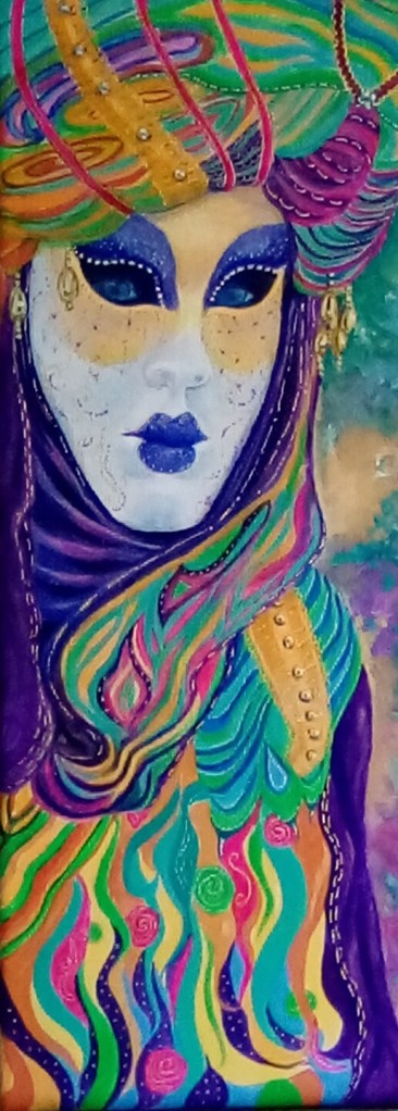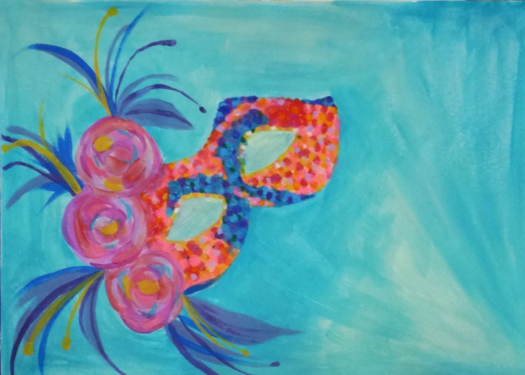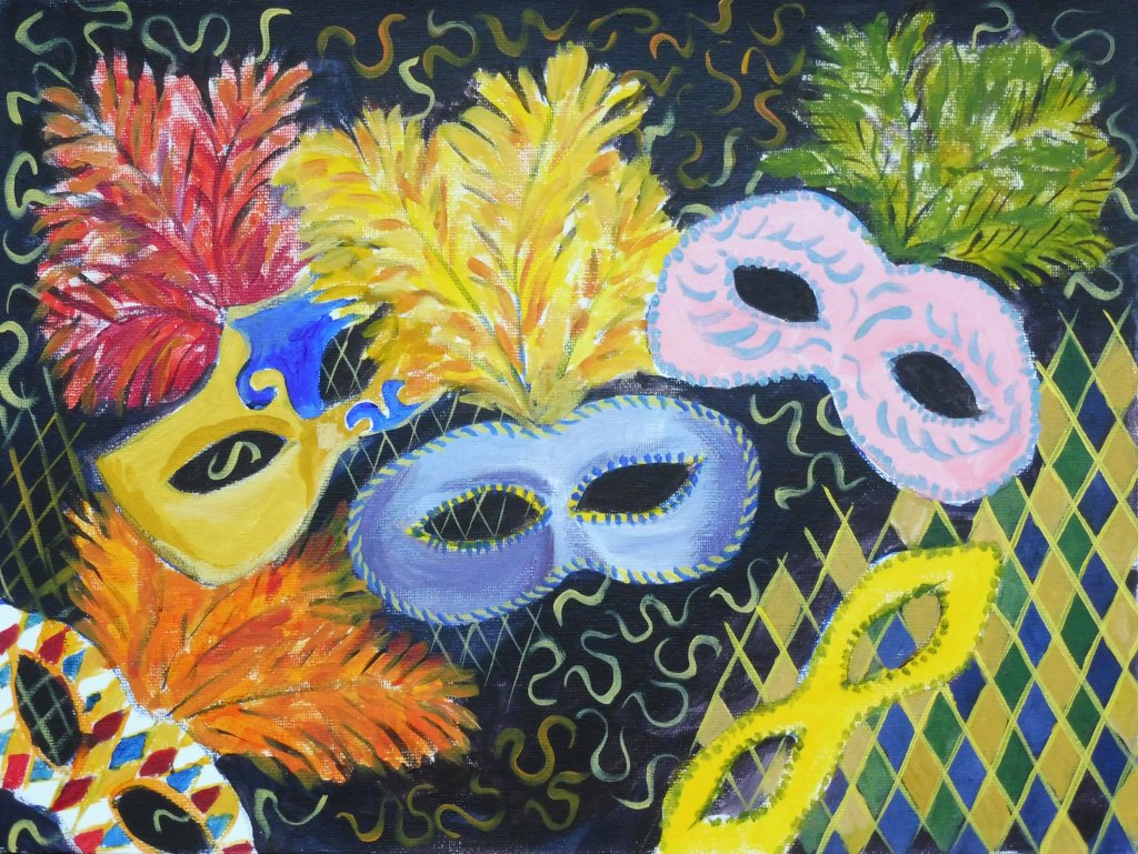 Masked Figures (watercolour) by Ann-MarieBourbon Street (acrylics) by IreneMasked Figure (acrylics) by EileenMask (acrylics) by KarenJazz Player (pastels) by Robin‘Masquerade’ (mixed media) by ChrisMask (acrylics) by Ann-MarieMasks (acrylics) by William