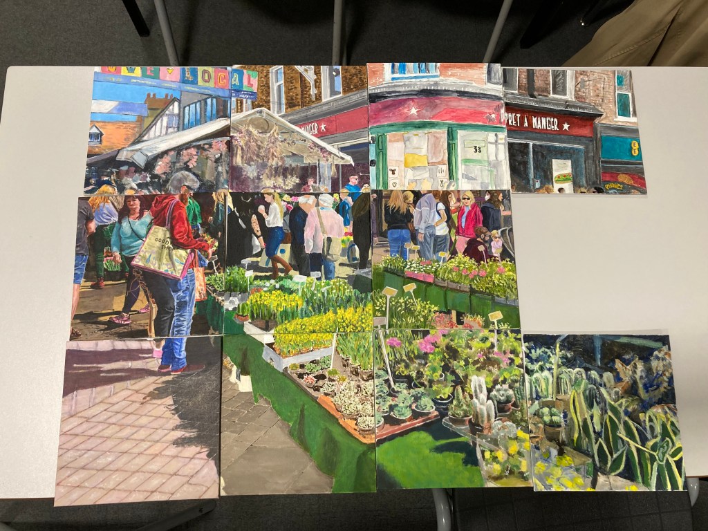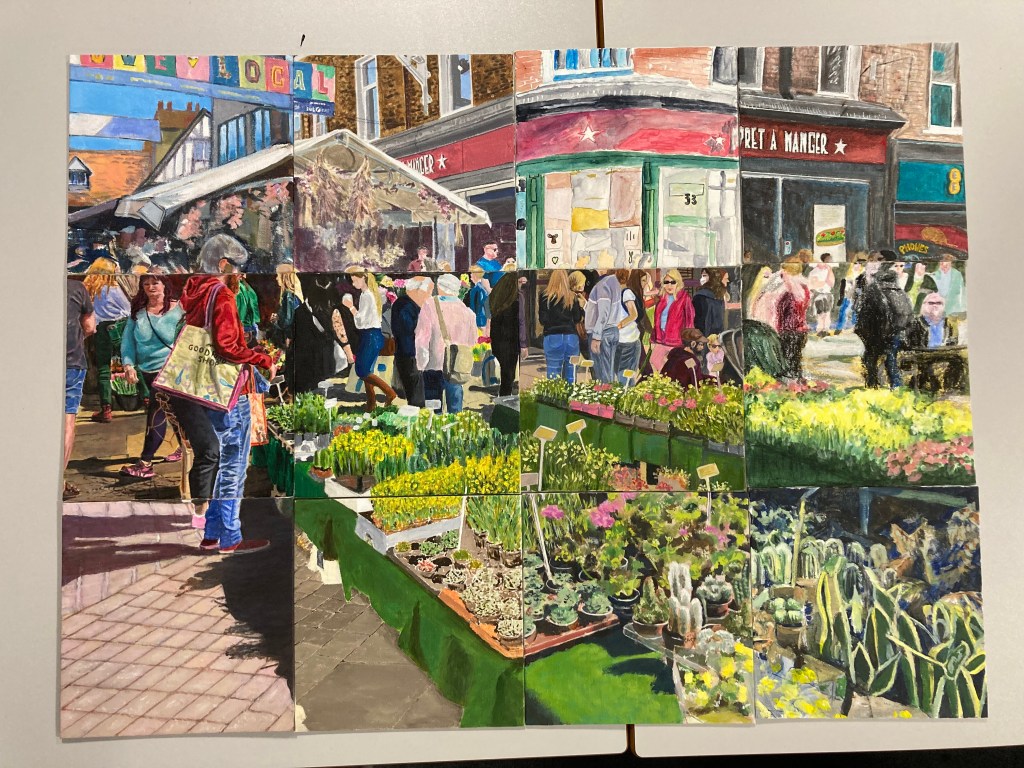 For the ‘Big Picture 2022’ project, we made a choice, from various candidate photographs, of a street market scene in York. The image was divided into twelve square tiles (see below).